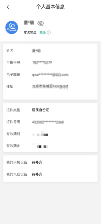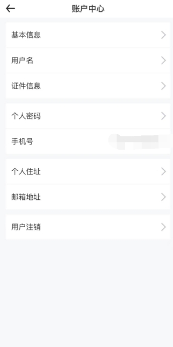 用戶進(jìn)入個(gè)人賬戶中心可以查看維護(hù)個(gè)人信息,包括證件信息維護(hù)、個(gè)人密碼維護(hù)、手機(jī)號維護(hù)、個(gè)人住址維護(hù)、郵箱地址維護(hù)、用戶注銷。