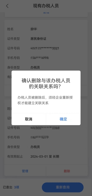 待確認(rèn)辦稅人員管理