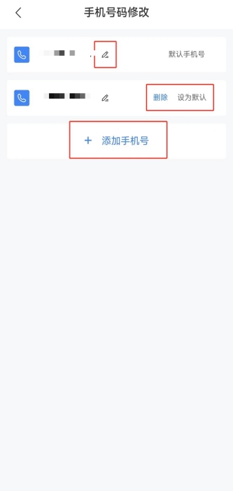 用戶進(jìn)入賬戶中心頁面,點(diǎn)擊選擇“手機(jī)號”打開手機(jī)號維護(hù)頁面,可對個(gè)人手機(jī)號碼進(jìn)行新增、修改、刪除及更換默認(rèn)手機(jī)號操作(注意:新增、刪除、修改手機(jī)號功能需要進(jìn)行短信或掃臉認(rèn)證)。